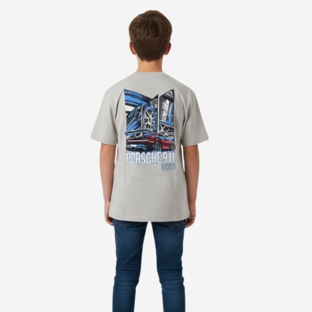 A sleek and modern crewneck tee for boys aged 6–14 featuring a high-definition embossed “PORSCHE 911” logo. Crafted with clean lines and a premium finish, it’s the ultimate statement piece for young automotive fans.