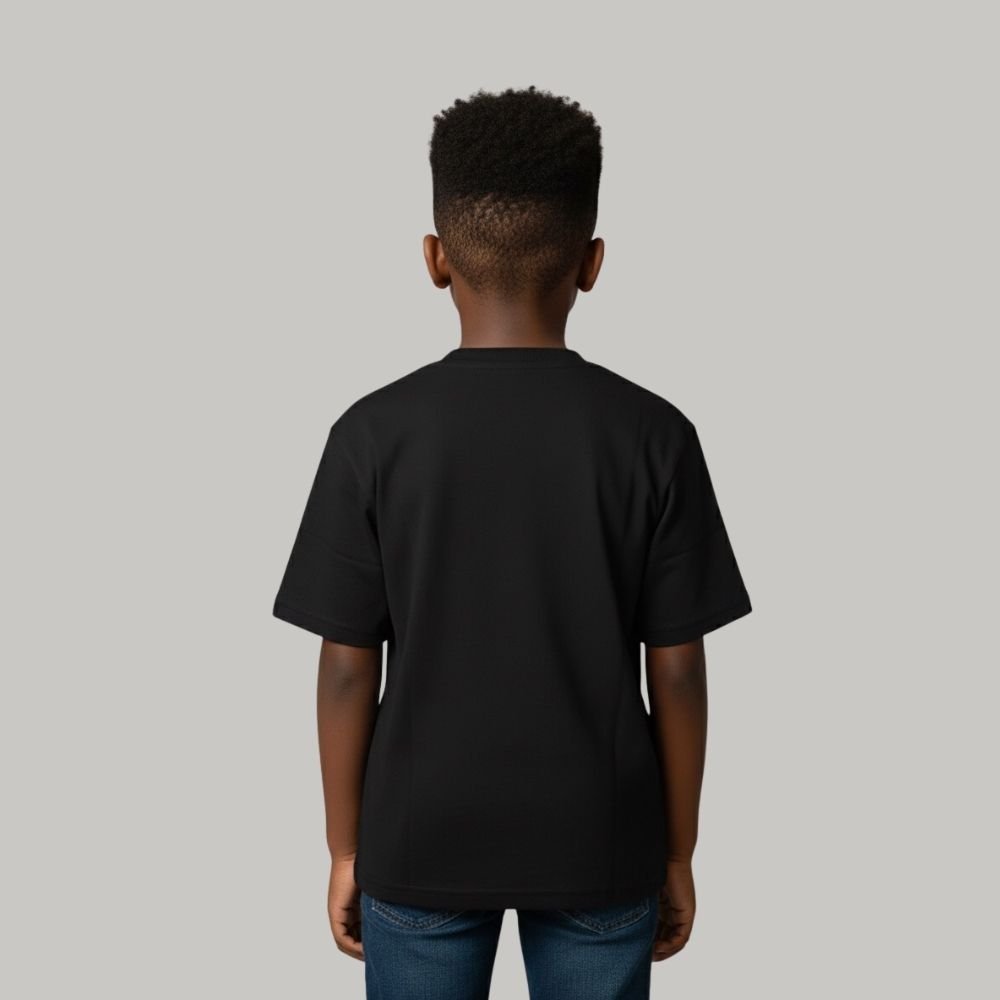 A bold, street-art inspired tee featuring high-contrast splatter graphics and Gothic “Butterfly” typography. Designed for boys aged 6–14, this piece blends edgy urban aesthetics with a clean, monochromatic finish.