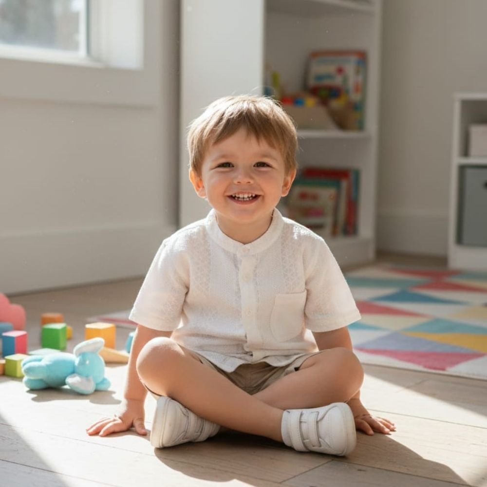 A refined, vintage-inspired button-down featuring intricate geometric embroidery and a clean mandarin collar. Tailored for boys aged 1–5, this 100% cotton shirt offers a timeless, polished look for life’s special milestones.
