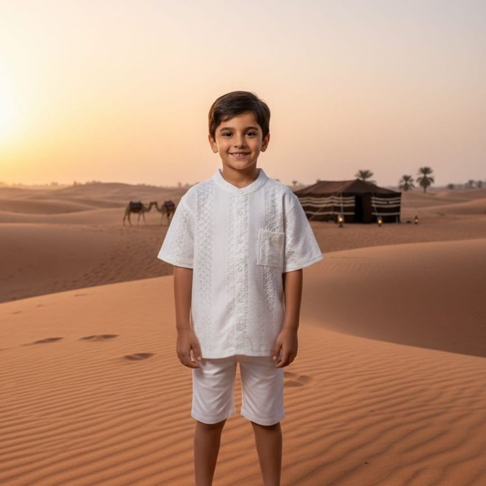 Summer-Ready Cotton: Crafted from 100% premium cotton weave that allows for maximum airflow, keeping him cool during outdoor ceremonies or family gatherings.